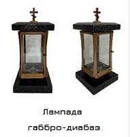 Лампады на памятниках - ёмкости предназначенные для масла из натуральных камней с фитилём, а также парафиновыми вкладышами и воском. Приток необходимого для горения кислорода, приходит через отверстие, расположенные по бокам лампадки.